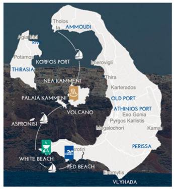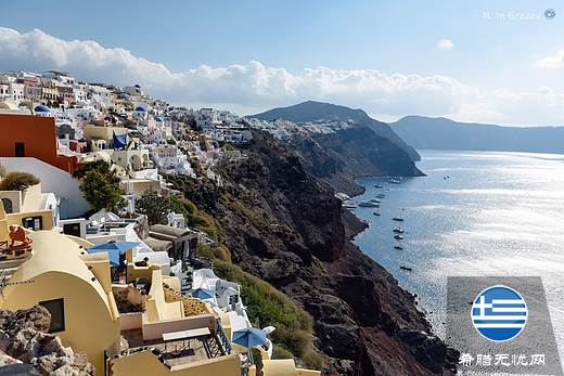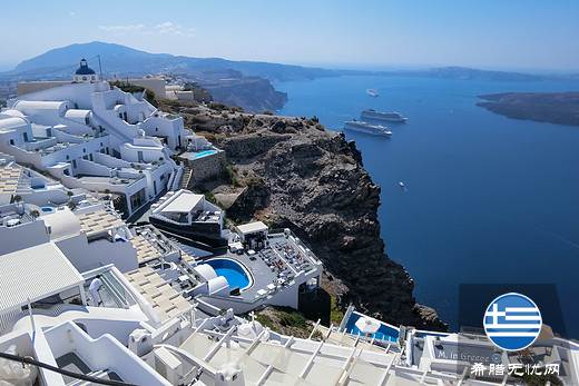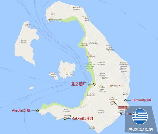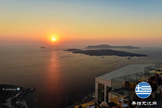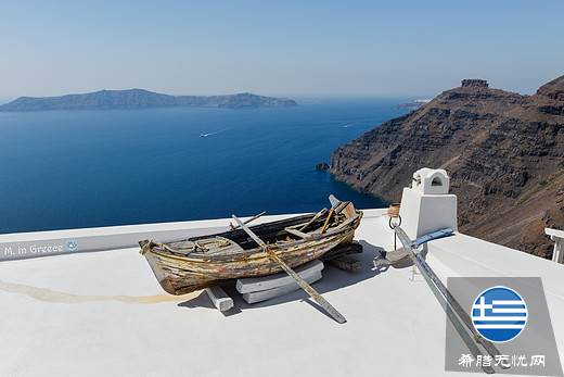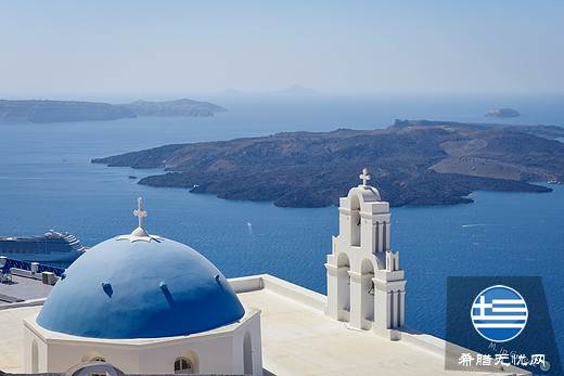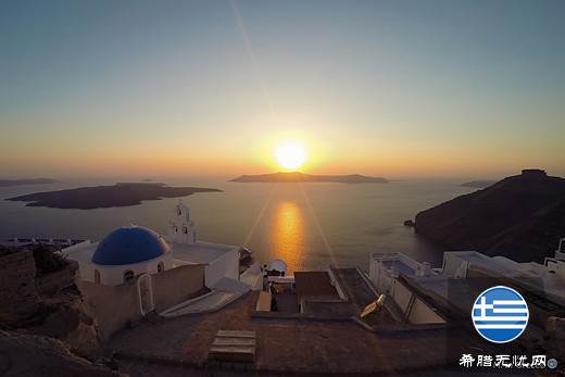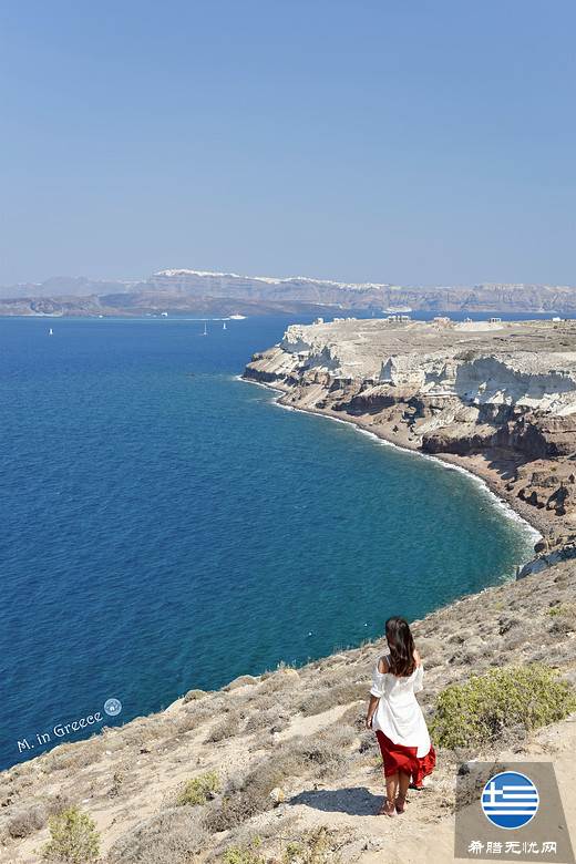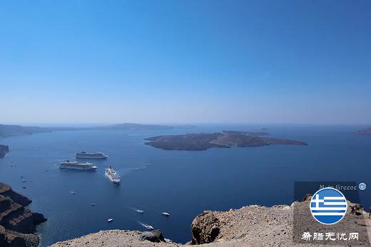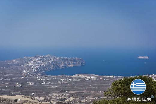 无论是西部的锡拉火山、东部的圣岛机场、北部的伊亚小镇、南端的Akrotiri灯塔都可一览无余,天气晴好时还能看到100多公里外的克里特岛诸山。