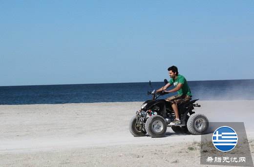 圣托里尼还有一种很拉风的交通工具——ATV,价格€10-€20/天,但并不推荐。一是ATV一般不租给中国驾照游客,需要拼人品,多碰几家车行;二是圣岛的路况不太好,上下爬坡的情况非常多,很多地方都是碎石路,安全系数不高;三是ATV一般没有顶棚,一路又晒又热风又大,爱美的妹纸可以果断放弃了。