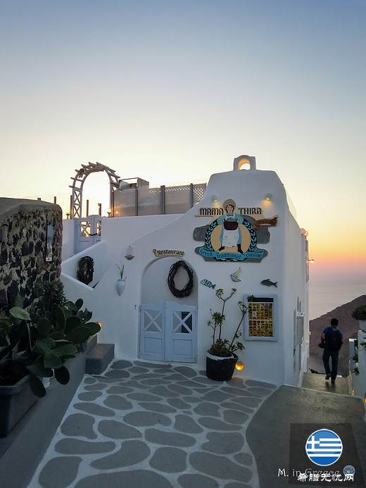 Mama Thira:去蓝顶教堂就是要经过这家餐厅旁边的小楼梯往上爬。因为在蓝顶教堂看完日落,就近在这里吃了晚餐,味道完全超越预期!不管是希腊传统菜,还是碳烤排骨,还是意大利海鲜饭,味道都可圈可点。性价比也不错,四道硬菜€65。只是就餐人数太多,服务员总是忙不过来。