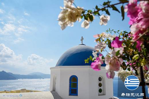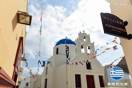 更何况圣岛的地标之一——蓝顶教堂就在这里!最好中午十分来到,虽然晒了点儿,却是拍摄蓝顶教堂的best timing。
