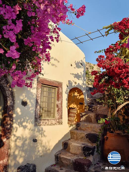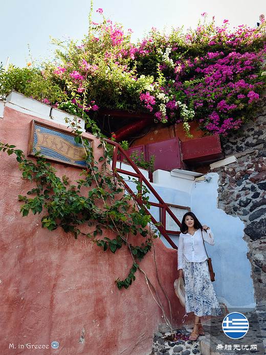 而我,关于圣托里尼的印象,是那绵延不绝的白色房屋,那通向大海的石头阶梯,那布置精美的露台转角,那开满三角梅的安静小巷,那隔墙有海的惊喜与浪漫……