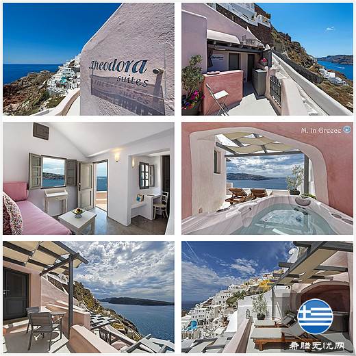 Theodora Suites:Oia的酒店。€400多一晚上,简直肉疼!但户外热水浴缸的诱惑实在太大… 更何况酒店的位置超赞!推开窗户就能感受到爱琴海的风,不用在观景台上人挤人,在私人露台上就可以看到Oia落日,老板还会很贴心地送来两杯白葡萄酒,泡在浴缸里喝着小酒就把夕阳给享受了。