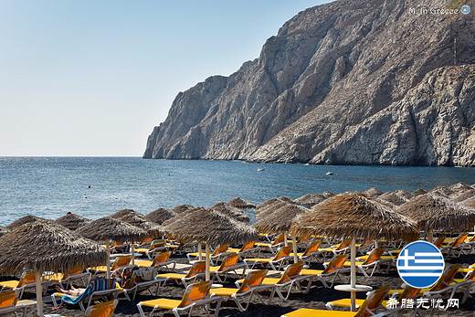 圣托里尼的沙滩实在是太一般,甚至都不能称作沙滩,黑沙滩不过是一片碎石滩而已。虽然海水很是清澈,但沙滩实在太硌脚,游泳的话会比较痛苦。