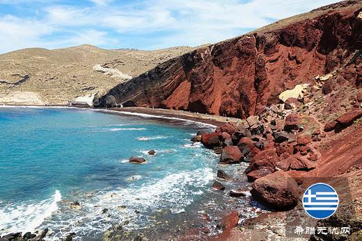 红沙滩是圣岛颜值最高的一片沙滩。毕竟黑沙滩、白沙滩都见多不怪了,红沙滩还是有些特色的。