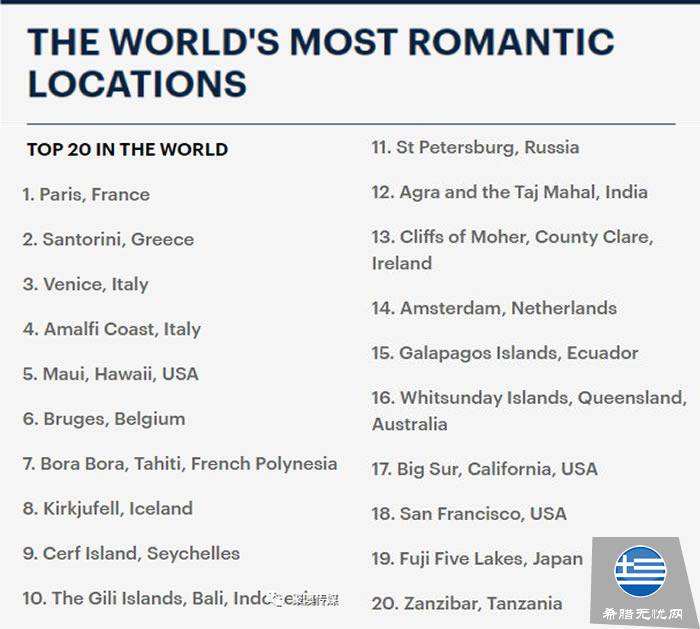 全球最浪漫的20个地方!希腊排名第2,前三名都被欧洲占领
