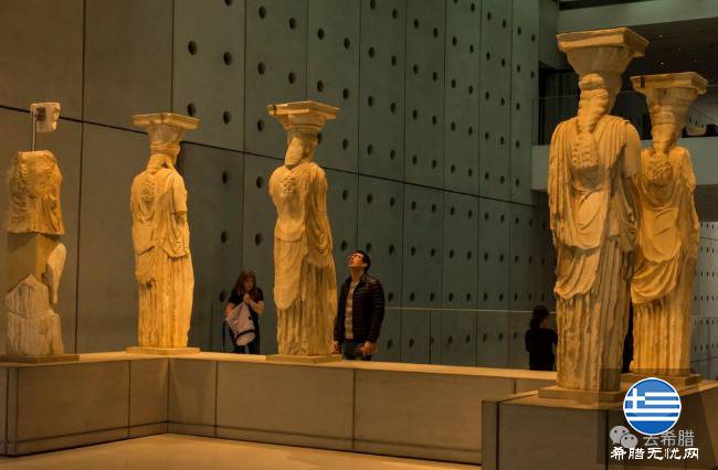如今卫城山上这里的六个美少女都已经不是原物了,而是复制品,有五个原物在卫城博物馆,另一个在大英博物馆。