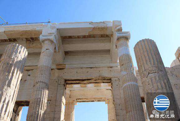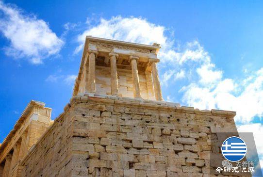 再向上走,就是著名的雅典娜胜利女神庙和雄伟壮观的卫城山门了。