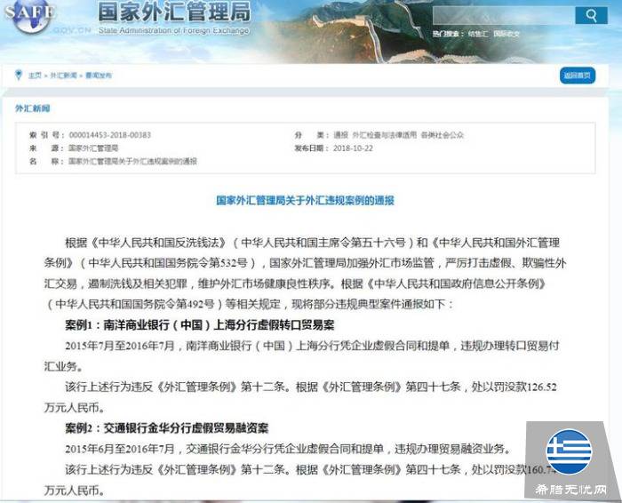 10月22日,国家外汇管理局(下称“外管局”)通报20起外汇违规典型案例,合计罚没2304.63万元,其中涉及7家银行违规被点名,共计罚没1275.62万元。