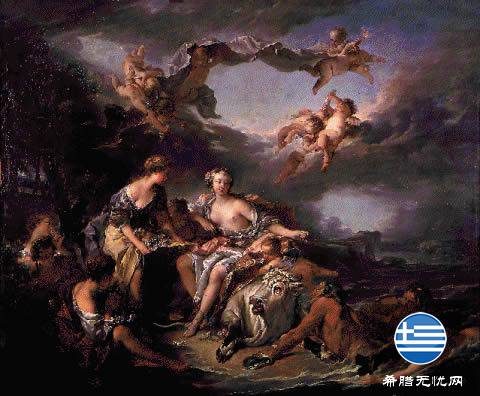 腓尼基王国的首府泰乐和西顿是块富饶的地方。国王阿革诺耳的女儿欧罗巴,一直深居在父亲的宫殿里。一天,在半夜时,她做了一个奇怪的梦。她梦见世界的两大部分亚细亚和对面的大陆变成两个女人的模样,在激烈地争斗,想要占有她。其中一位妇女非常陌生,而另一位,她就是亚细亚,长得完全跟当地人一样。亚细亚十分激动,她温柔而又热情地要求得到她,说自己是把她从小喂养大的母亲;而陌生的女人却像抢劫一样强行抓住她的胳膊,将她拉走。"跟我走吧,亲爱的,"陌生女人对她说,"我带你去见宙斯!因为命运女神指定你作为他的情人。"
