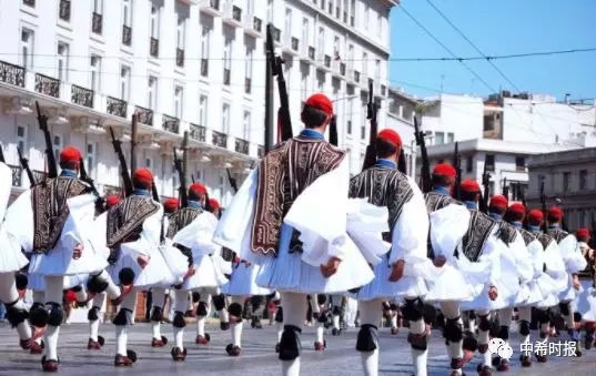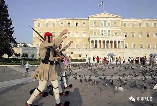 在当今雅典的政治心脏——国会大厦前的无名烈士墓前。这里的特殊位置,相当于中国的天安门广场,俄罗斯红场。