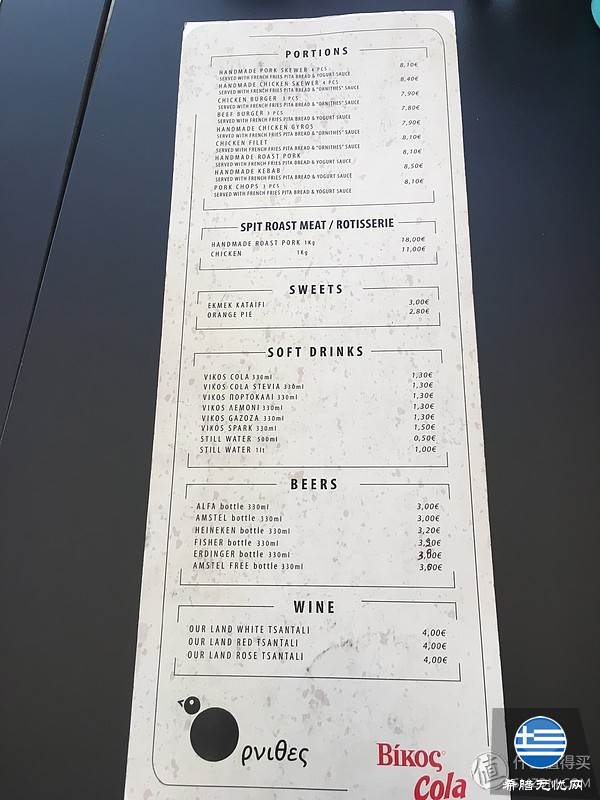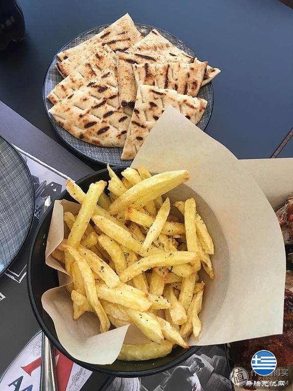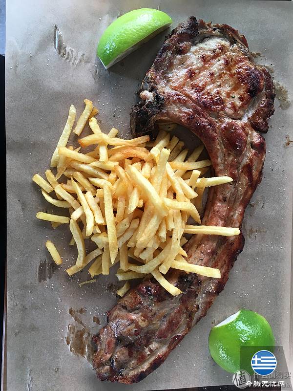 看过之前几篇文章的同学应该知道,我们到希腊的时候已经是下午2点多了,刚好赶上他们吃饭的高峰期,走在希腊格力法达中心区,看到所有商铺都不开门但是所有饭店都爆满的时候,我们也是一脸懵逼的(那时候不知道他们吃饭晚)。不过饿的前心贴后背的我们也顾不了这么多了,随便找了一家还有空位的就进去一人点了一份肉。不过值得称赞的是,虽然菜的价格很贵,但是肉的部分确实性价比很高,那么大的一块肉排(应该是猪肉排)配薯条的饼大概也只有8~10欧的样子(要知道一瓶可乐可是要1.3欧的