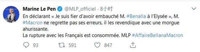 玛丽娜·勒庞发推特谴责马克龙