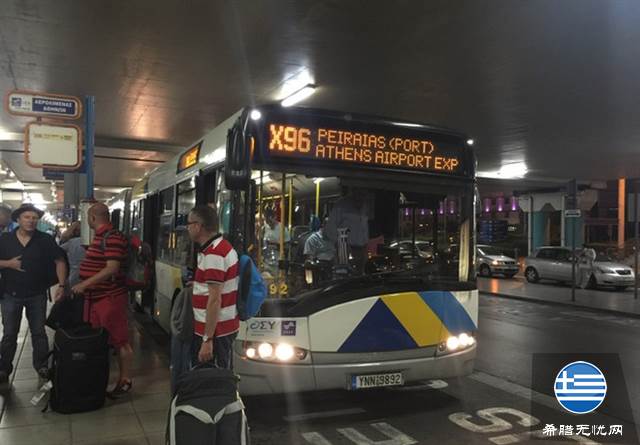 在雅典下飞机后,从入境大厅4号、5号门走出,右转可看到X95路公交车站台,搭乘X95路公交可到市中心的宪法广场。时间大约1小时,车费为5欧元,全天24小时运营,是地铁之外的首选。如果想从机场直接前往比雷埃夫斯港(Piraeus)港口,搭乘轮船前往爱琴海,可乘坐X96路公交车,车费5欧元。