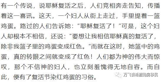 每年复活节前,希腊人都要将鸡蛋染成红色,以纪念耶稣为世人受难,缅怀他伟大的牺牲。