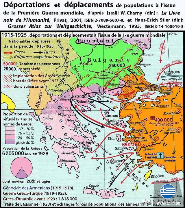 希土人口互换示意图,其中从希腊被“遣返”土耳其的人里,其实有相当比例是世代生活在希腊的“希腊人”