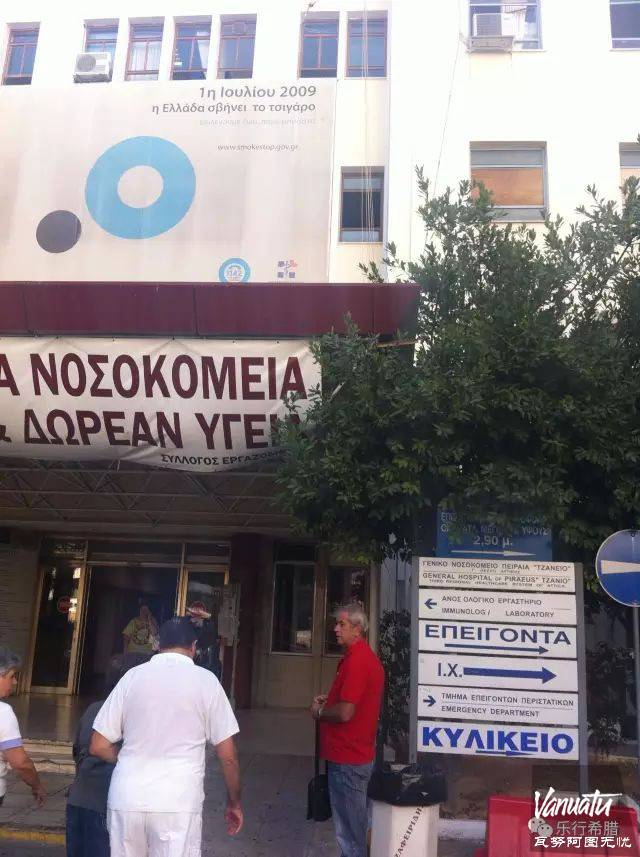 当走进医院,我们一下子就懵了,所有的文字都是希腊语,完全看不懂,而且也没有明显的箭头指引什么的。迪米特里斯显然也在努力找到相应的科室,而从我们去到的各个科室,显然这里的科室安排是没有什么规划的。更让我们惊奇的是,有些关键的科室医生不在!而且据说要一个月之后才回来。有些科室的医生也不再岗位上,而是聚在一起讨论罢工。虽然能够理解经济危机之下医生们也在为自身权益考虑,但现实状况还是大大出乎我们意料。我们俩已经完全迷失了,只能靠迪米特里斯来回奔波帮我们处理好所有的事情。