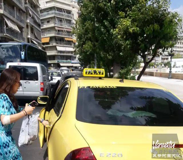 他帮我们拿好行李,带我们走到停车场,然后很优雅地邀请我们上车。那是一辆黄色车身的奔驰出租车,在车上他跟我们介绍说,希腊的出租车有两类,一类是大街上招手即停的,一类是只接受预约而平时不在大街上跑的。后者的车况、服务等都比前者要更好,当然收费也更高。
