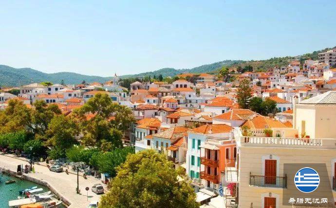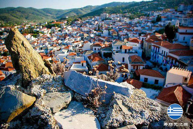 这座城镇或许是斯波拉泽斯群岛风景最迷人的港口了,许多座房子将半圆形的海湾环绕起来,错落有致地排列在山坡上,极富画面感。