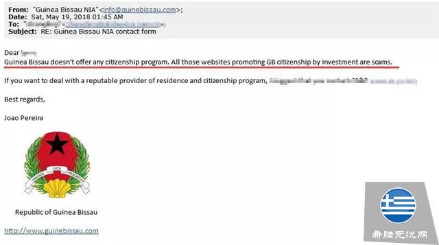 几内亚比绍官方亲自澄清根本没有投资入籍法案,下图为投资局的官方回复: