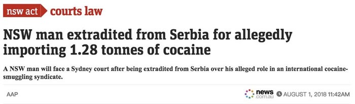 今年1月,塞尔维亚警方破了一起重大的跨国贩毒案,并逮捕了两名澳洲籍毒贩子!